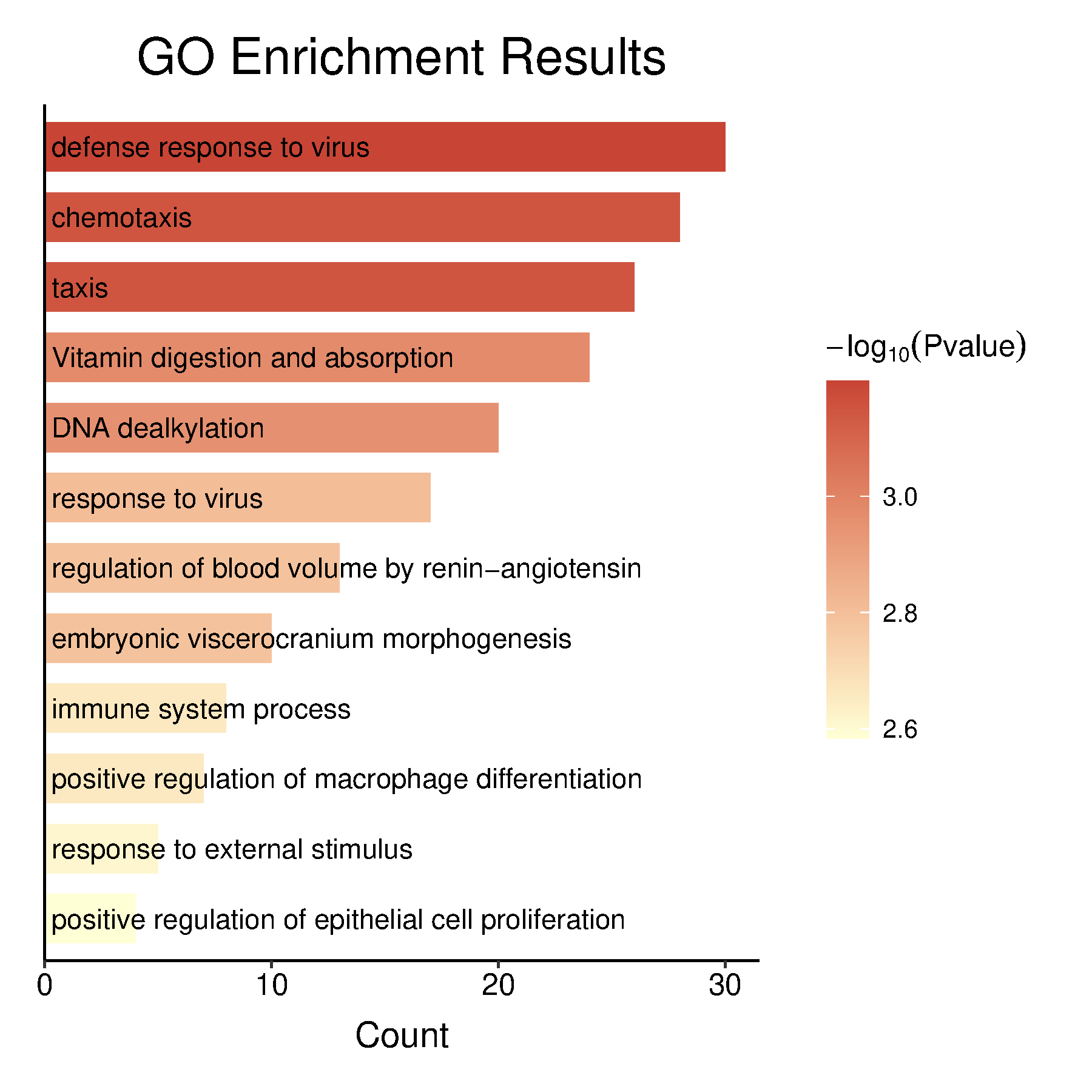 富集结果P值渐变bar图